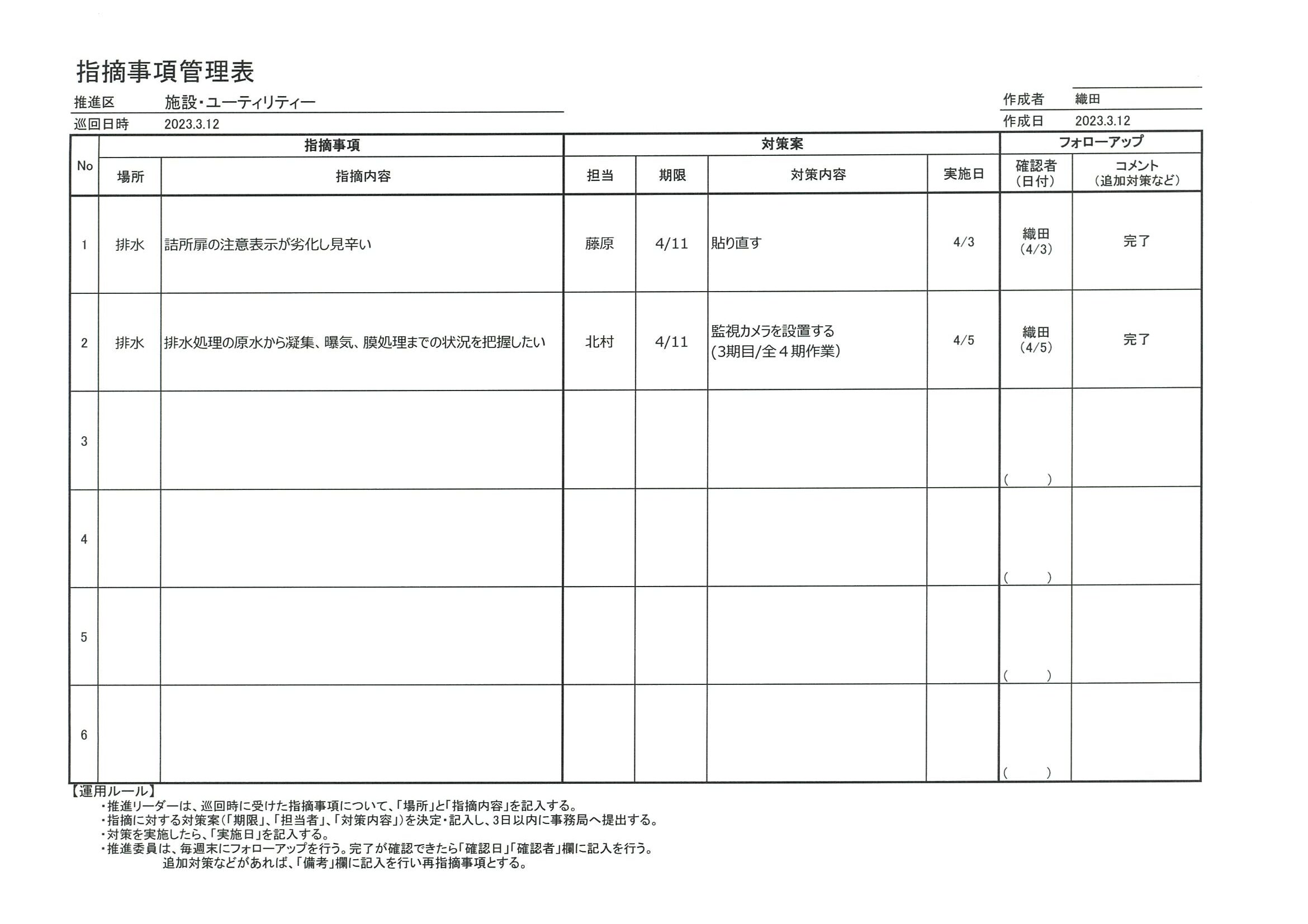 指摘事項管理表―2023年3月12日