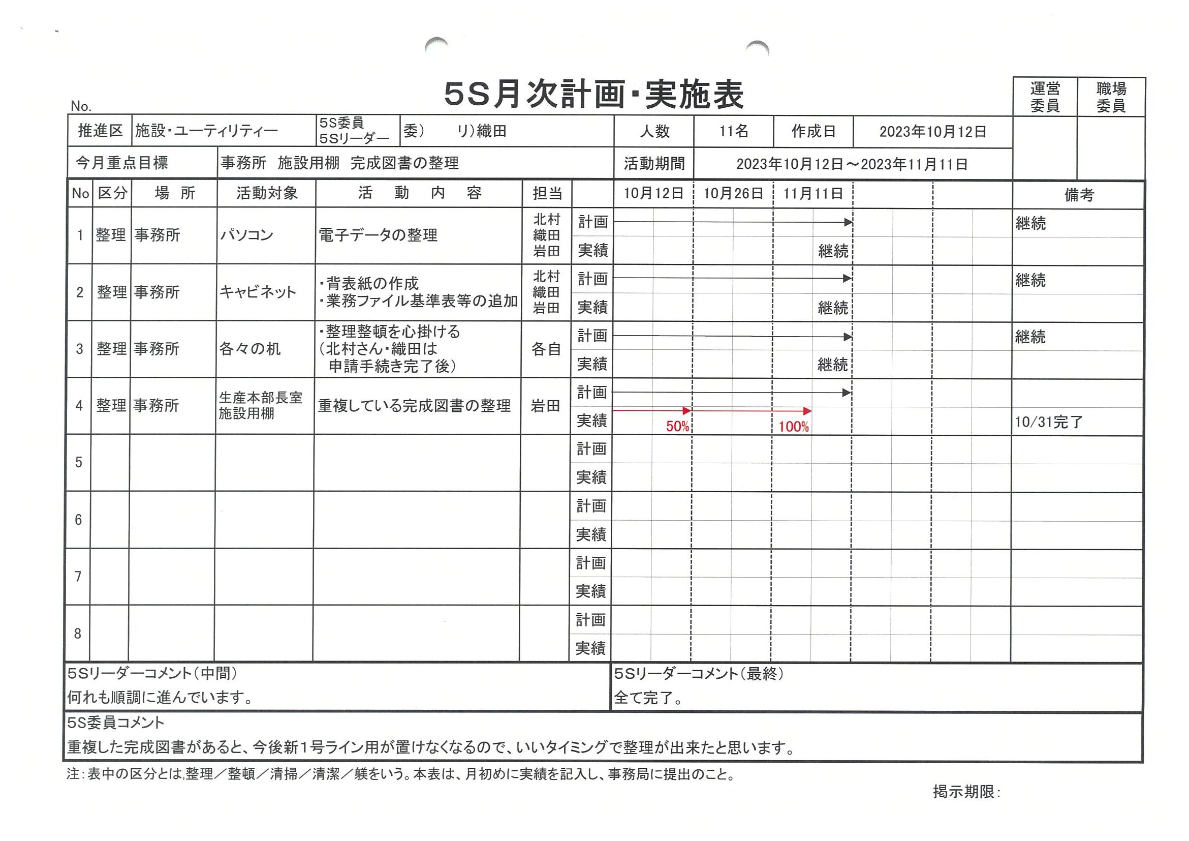 5S月次計画・実施表―2023年11月12日