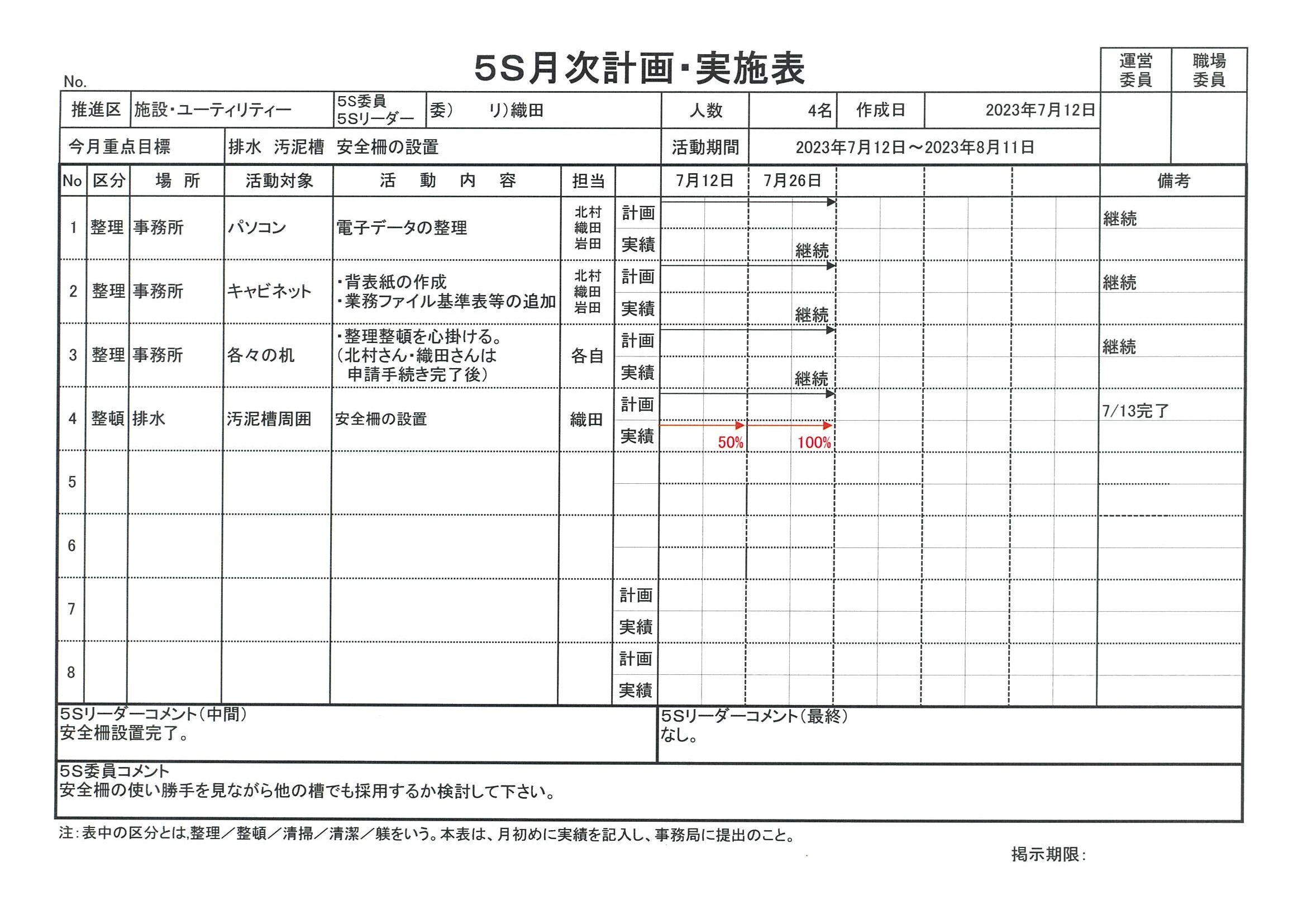 5S月次計画・実施表―2023年7月12日
